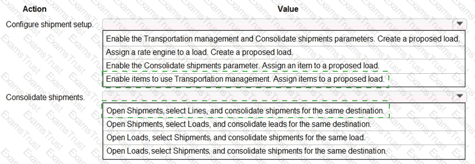 Which options should you use? To answer, select the appropriate options in the area.