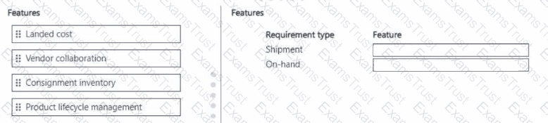What should you configure? To answer, move the appropriate features to the correct requirement types. You may use each feature once, more than once, or not at all. You may need to drag the split bar between panes or scroll to view content.