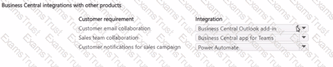 Which Microsoft integration aligns with each requirement? To answer, select the appropriate options in the answer area.
