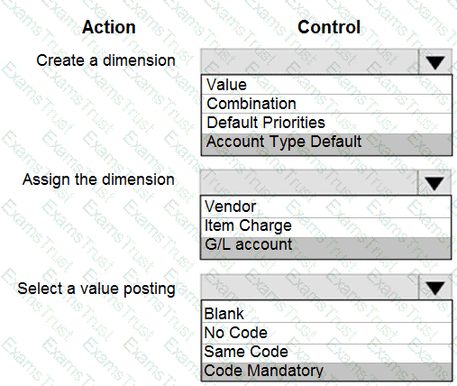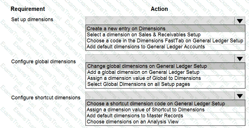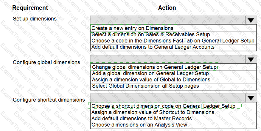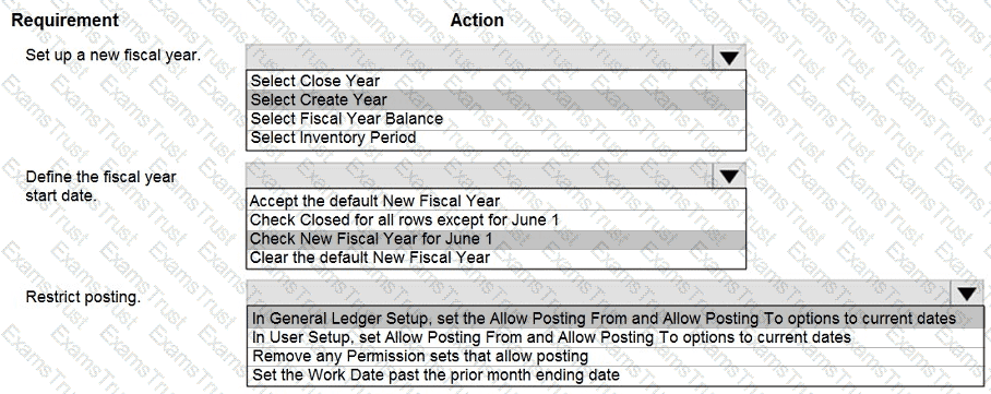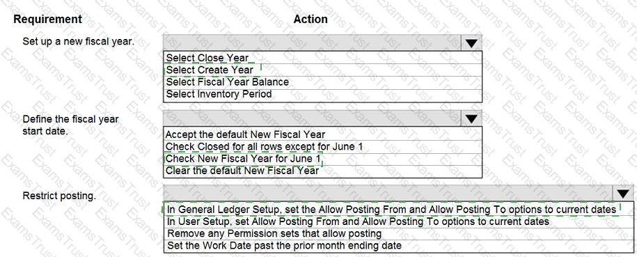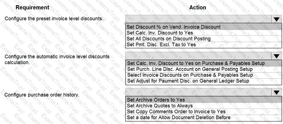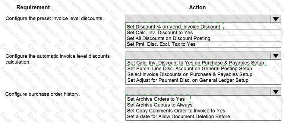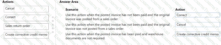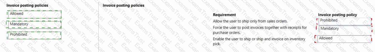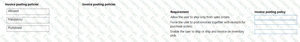 Which invoice posting policy should you use? To answer, move the appropriate invoice posting policies to the correct requirements. You may use each requirement once, more than once, or not at all. You may need to move the split bar between panes or scroll to view content