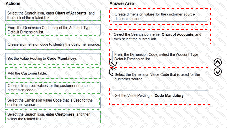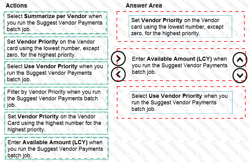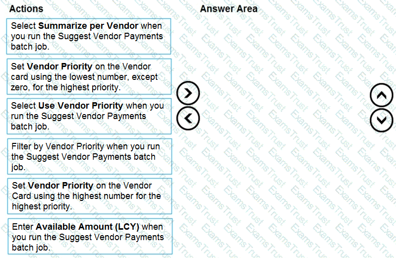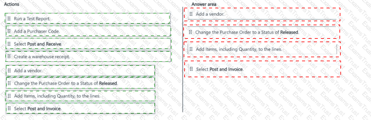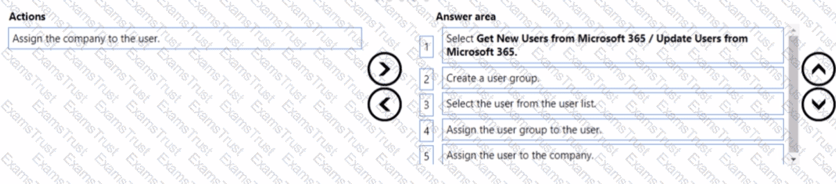 In which order should you perform the actions? To answer, move all actions from the list of actions to the answer area and arrange them in the correct order.