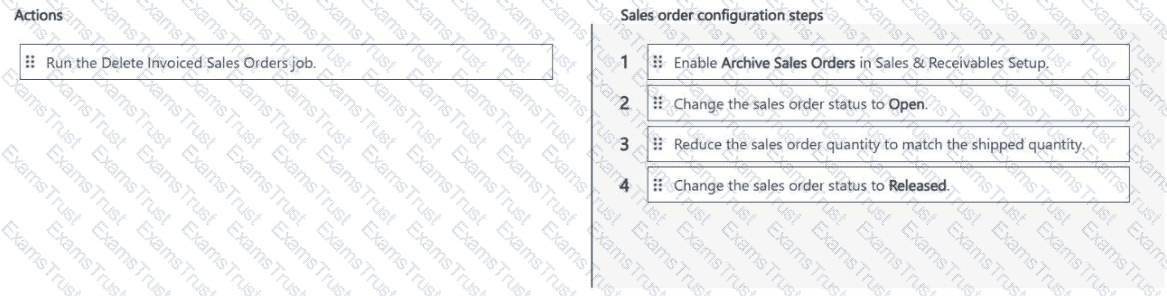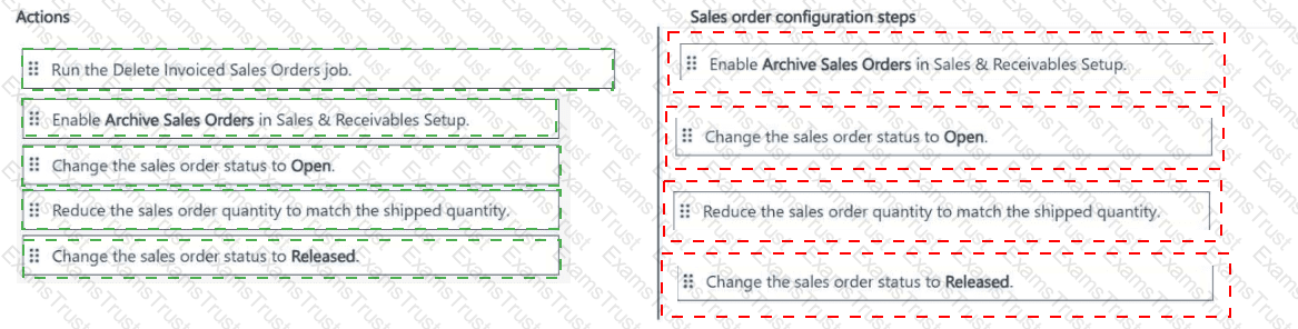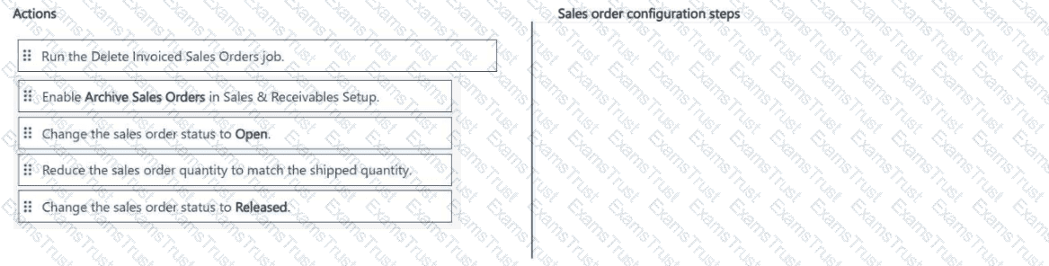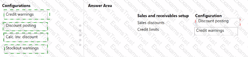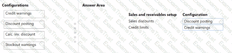 What should you configure for each setup area? To answer, drag the appropriate configurations to the correct sales and receivables setup. Each configuration may be used once, more than once, or not at all. You may need to drag the split bar between panes or scroll to view content.