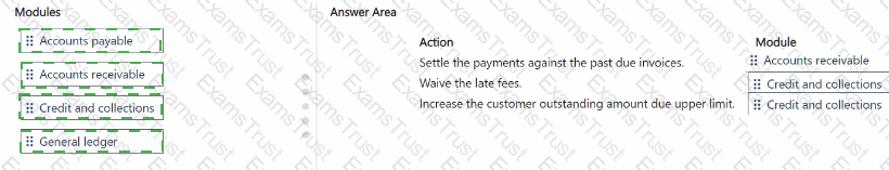 A company plans to implement Dynamics 365 Finance. The company wants to be able to perform the following actions:
