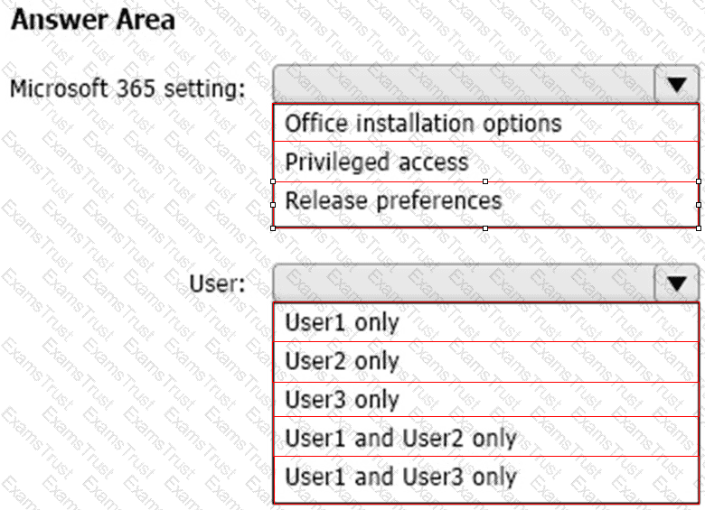 What should you configure in the Microsoft 365 admin center? To answer, select the appropriate options in the answer area.