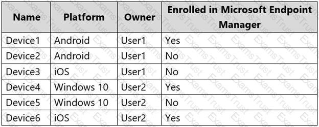 You have a Microsoft 365 E5 subscription. The subscription contains users that have the following types of devices:
