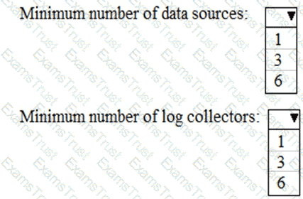 What is the minimum number of data sources and log collectors you should create from Microsoft Cloud App Security? To answer, select the appropriate options in the answer area.