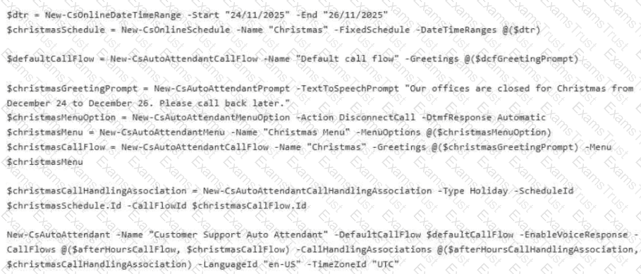 You need to configure a virtual receptionist for your company's main office located at 1 Microsoft Way, Redmond. The solution must meet the following requirements: