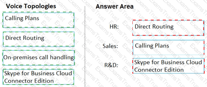 You need to recommend a voice topology for the departments. The topology must meet the calling requirements and the security requirements.