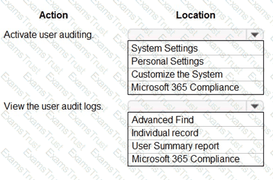 Which actions should you configure? To answer, select the appropriate options in the answer area.