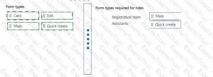 Which form types should you create? To answer, move the appropriate form types to the correct roles. You may use each form type once, more than once, or not at all. You may need to move the split bar between panes or scroll to view content.