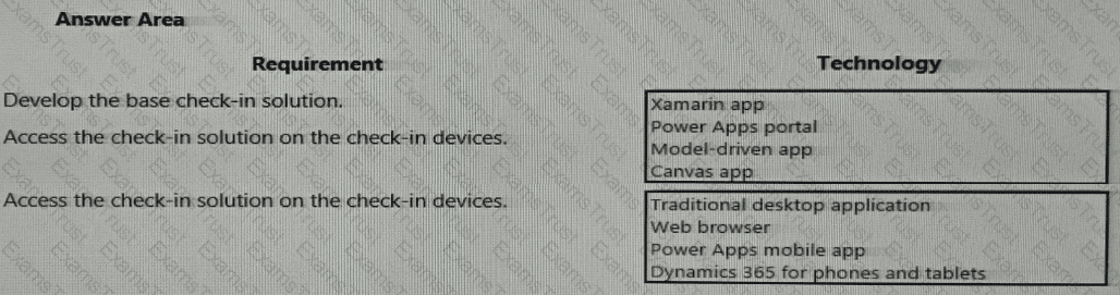 You need to embed the check-in solution into the communication solution. To answer, select the appropriate options in the answer area.