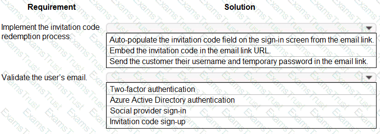 The company wants to replace the existing portal with a Power Apps portal. users must sign up for access to the portal by using a Microsoft account and a unique invitation code that will be provided to the users.