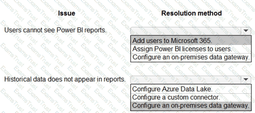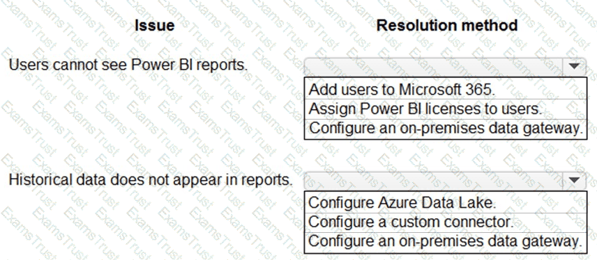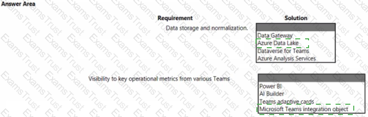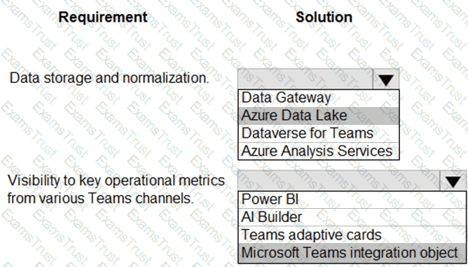 The company plans to replace the existing solution with a Microsoft Power Platform solution that connects to the data warehouse. The company wants to provide analytical information to executives in a Microsoft Teams channel to support business planning.