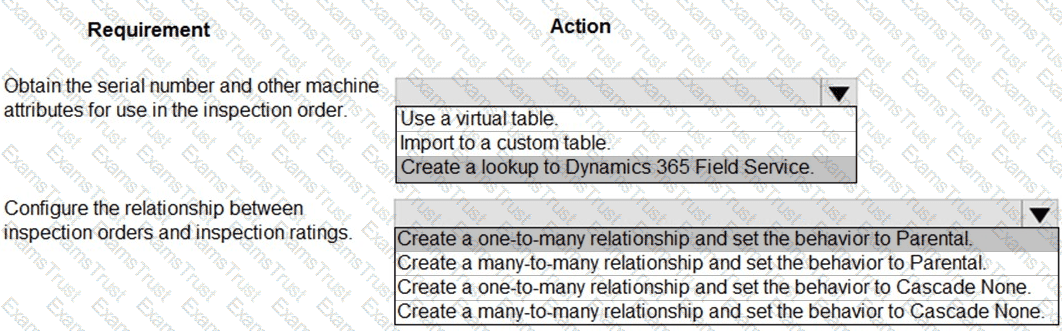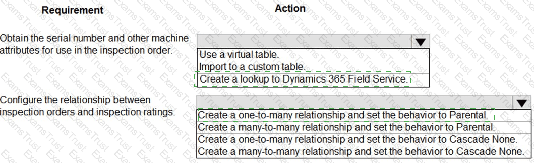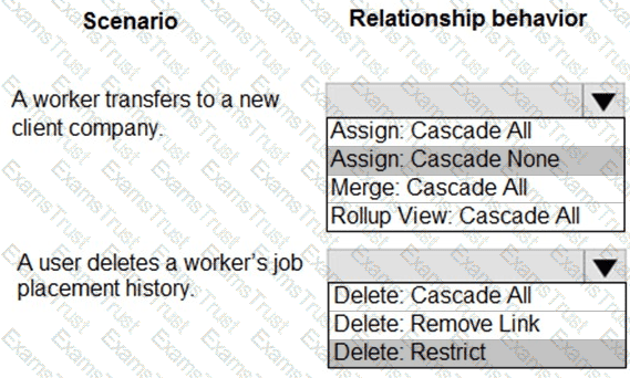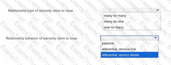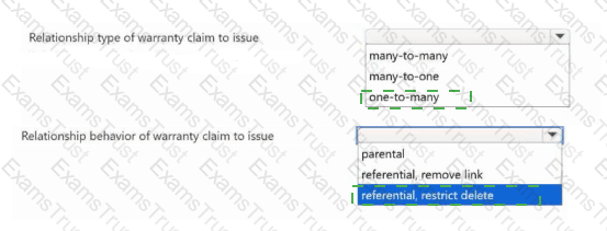 Which relationship configurations should you use? To answer, select the appropriate options in the answer area.