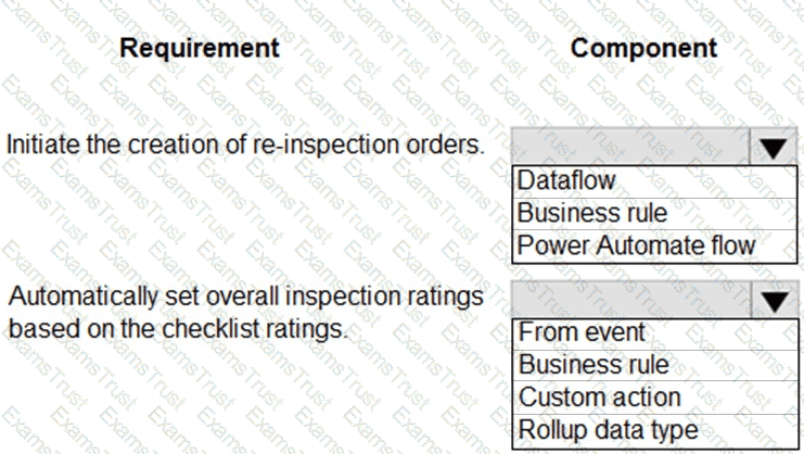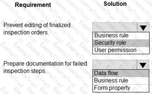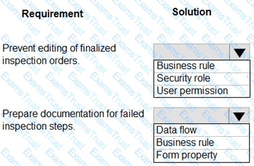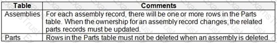 You are designing a Microsoft Power Platform solution for an automobile parts manufacturer. You create the following tables: