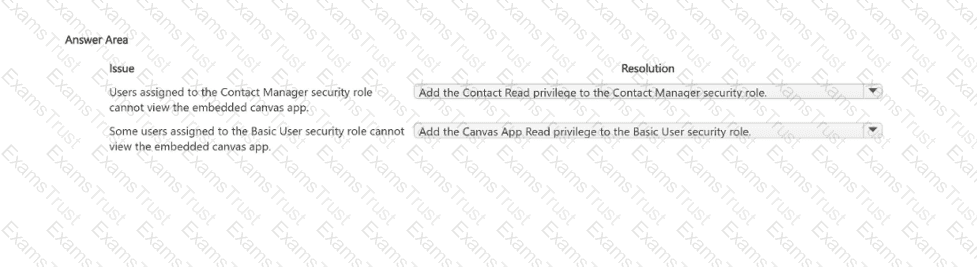 • Some users assigned to the Basic User security role cannot see the embedded canvas app.
