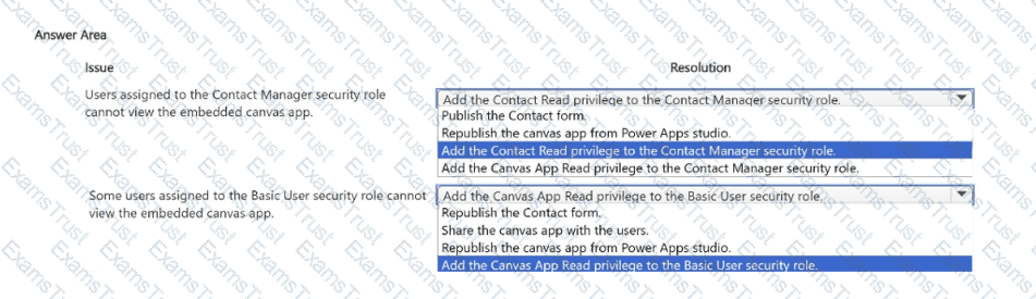 • Users assigned to the Contact Manager security role cannot see the embedded canvas app.