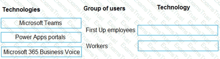 What should you recommend? To answer, drag the appropriate technologies to the correct groups of users. Each technology may be used once, more than once, or not at all. You may need to drag the split bar between panes or scroll to view content.