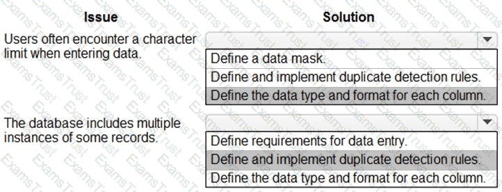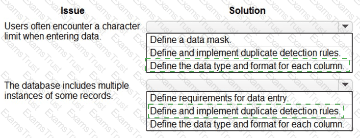 You need to recommend solutions to ensure that the data quality issues are not present in the Power Platform solution.