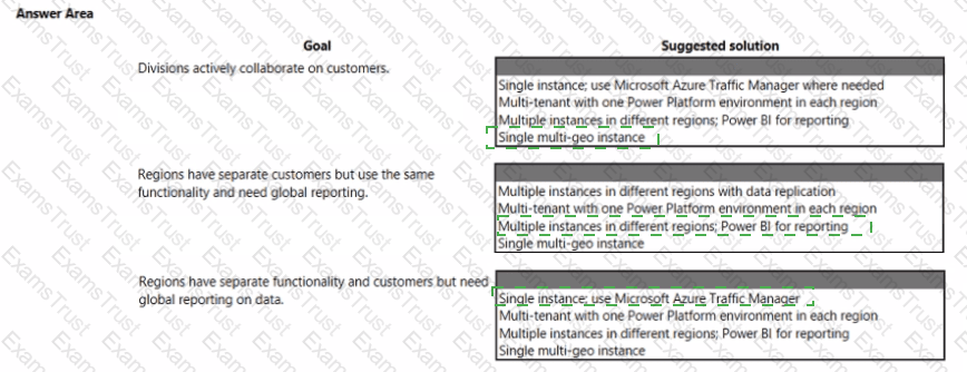 A multinational organization uses a single Microsoft Power Platform environment. The instance hosts multiple customizations for different users m different regions.