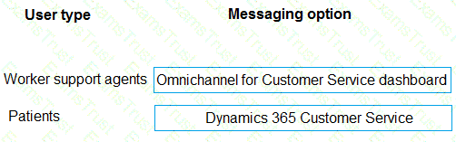 What should you recommend? To answer, drag the appropriate messaging options to the correct user types. Each messaging option may be used once, more than once, or not at all. You may need to drag the split bar between panes or scroll to view content.