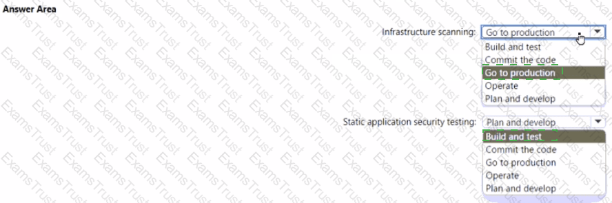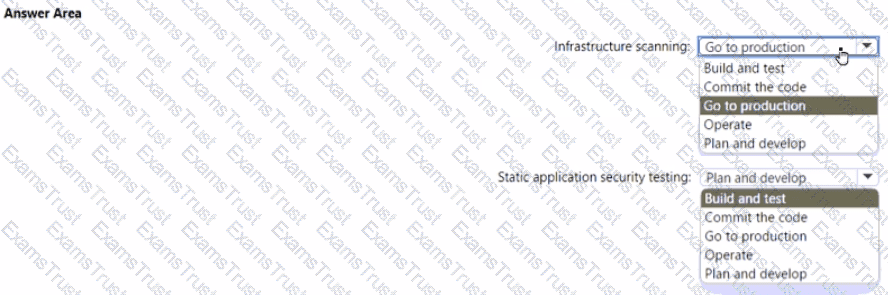 Your company plans to follow DevSecOps best practices of the Microsoft Cloud Adoption Framework for Azure to integrate DevSecOps processes into continuous integration and continuous deployment (Cl/CD) DevOps pipelines