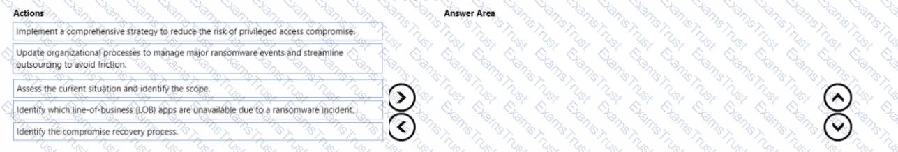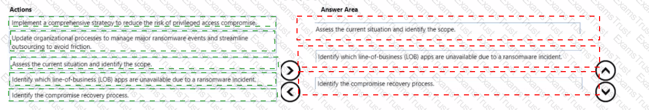 Which three actions should you recommend be performed in sequence? To answer, move the appropriate actions from the list of actions to the answer area and arrange them in the correct order.