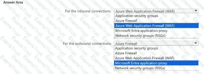 • Inbound connections to App1 that contain security threats specified in the Core Rule. Set (CRS) from the Open Web Application Security Project (OWASP) must be blocked.