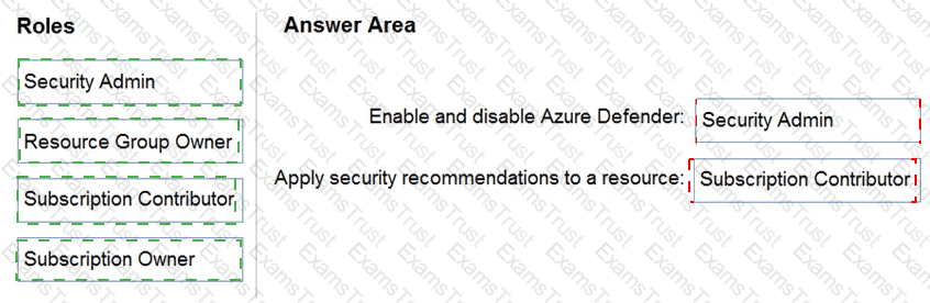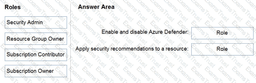 Which Azure Security Center role should you use for each requirement? To answer, drag the appropriate roles to the correct requirements. Each role may be used once, more than once, or not at all. You may need to drag the split bar between panes or scroll to view content.