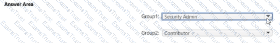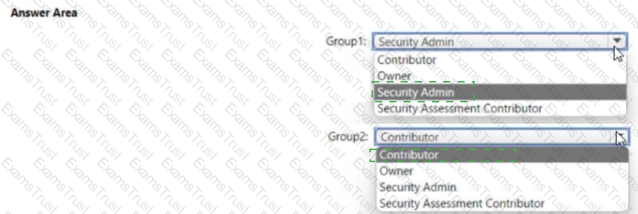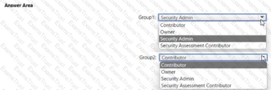 You need to assign role-based access control (RBAQ roles to Group1 and Group2 to meet The Microsoft Defender for Cloud requirements and the business requirements Which role should you assign to each group? To answer, select the appropriate options in the answer area NOTE Each correct selection is worth one point.