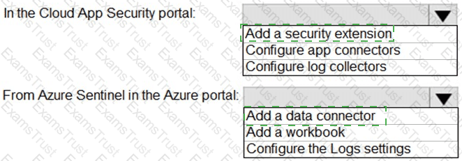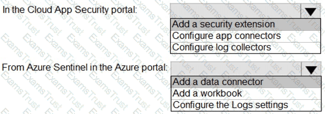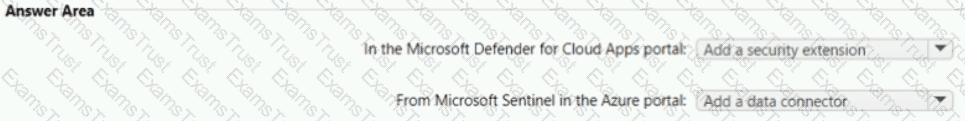 You need to configure the Microsoft Sentinel integration to meet the Microsoft Sentinel requirements. What should you do? To answer, select the appropriate options in the answer area. NOTE: Each correct selection is worth one point.