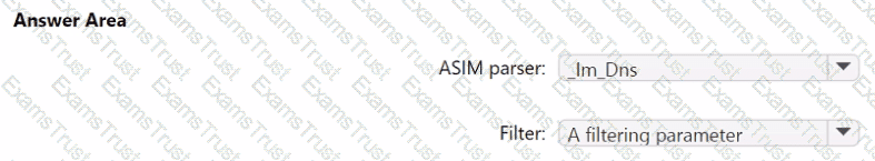 You need to implement the ASIM query for DNS requests. The solution must meet the Microsoft Sentinel requirements. How should you configure the query? To answer, select the appropriate options in the answer area. NOTE: Each correct selection is worth one point.