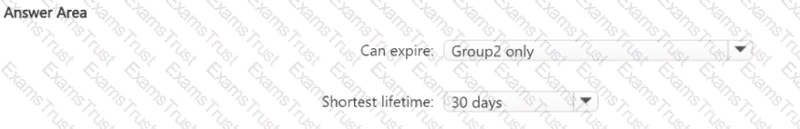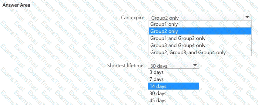 Which groups can be set to expire, and what is the shortest group lifetime you can set? To answer, select the appropriate options in the answer area.