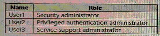 Your network contains an on-premises Active Directory domain named contoso.com that syncs with a Microsoft Entra tenant by using Microsoft Entra Connect. The domain contains the users shown in the following table.