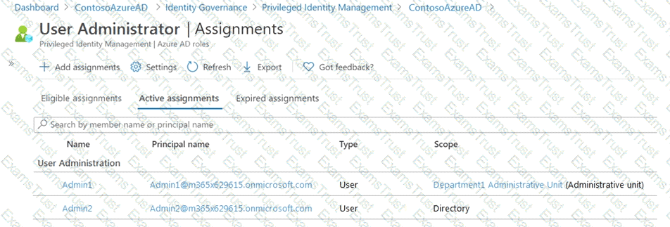 Department1 has the user administrator assignments shown in the Assignments exhibit. (Click theAssignmentstab.)