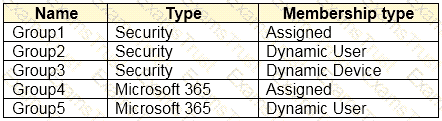 You have a Microsoft 365 E5 subscription that contains the groups shown in the following table.