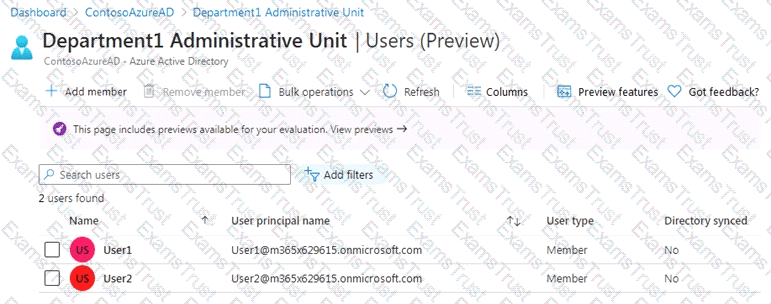 You have an Azure Active Directory (Azure AD) tenant that contains an administrative unit named Department1.