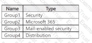 You have an Azure Active Directory (Azure AD) tenant that contains the groups shown in the following table.