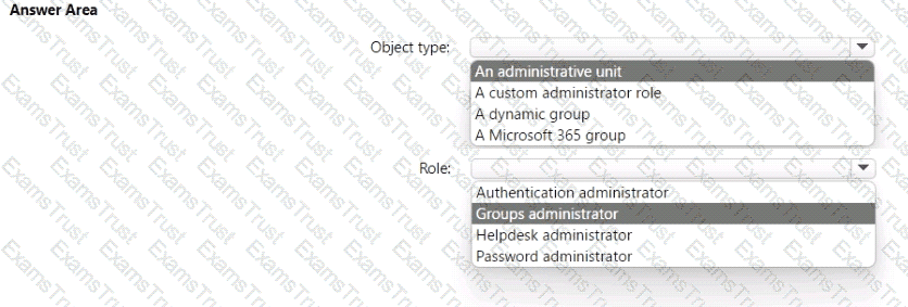 Which object type and Azure Active Directory (Azure AD) role should you use? To answer, select the appropriate options in the answer area.