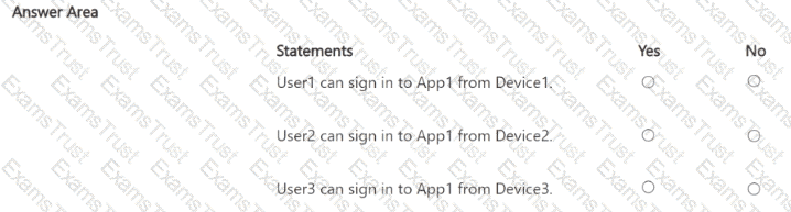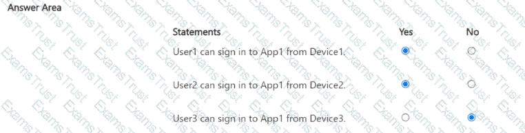 You have a Microsoft 365 subscription that contains three users named User1, User2, and User3 and an enterprise app named Appl. The subscription contains the devices shown in the following table.