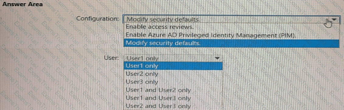 Which configuration is required, and which user should perform the configuration? To answer, select the appropriate options in the answer area.