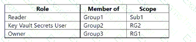 You create the role-based access control (RBAC) role assignments shown in the following table.