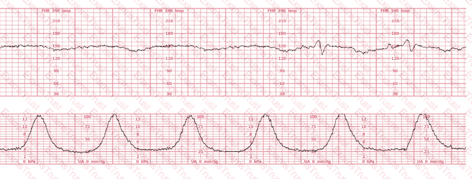 Fetal supraventricular tachycardia will often appear on the monitor as