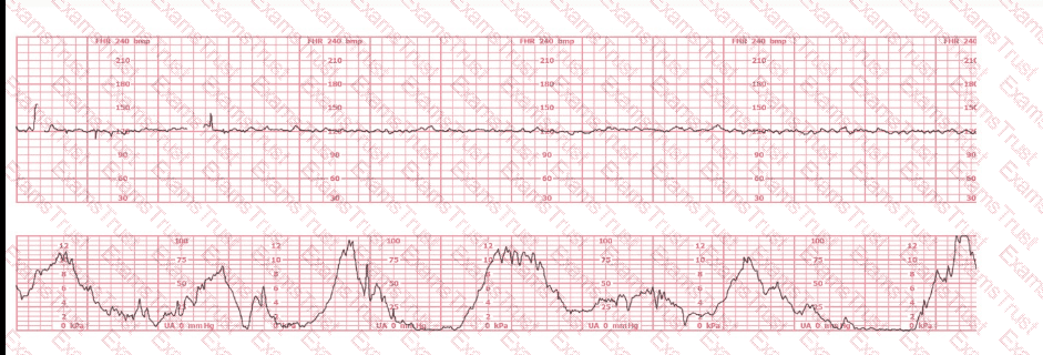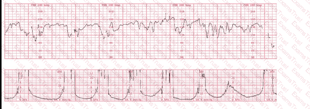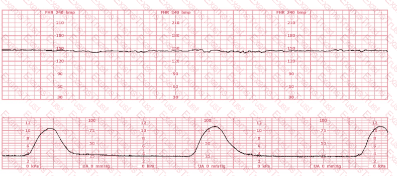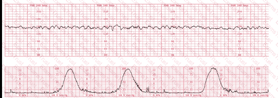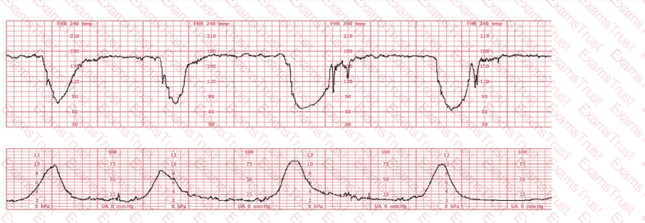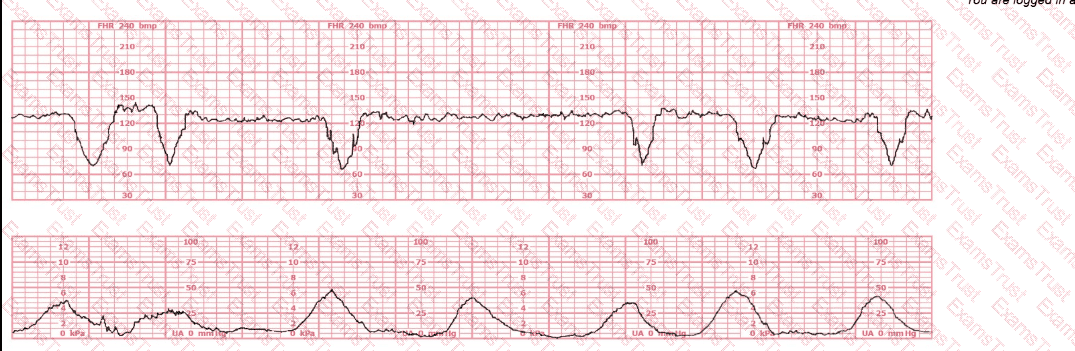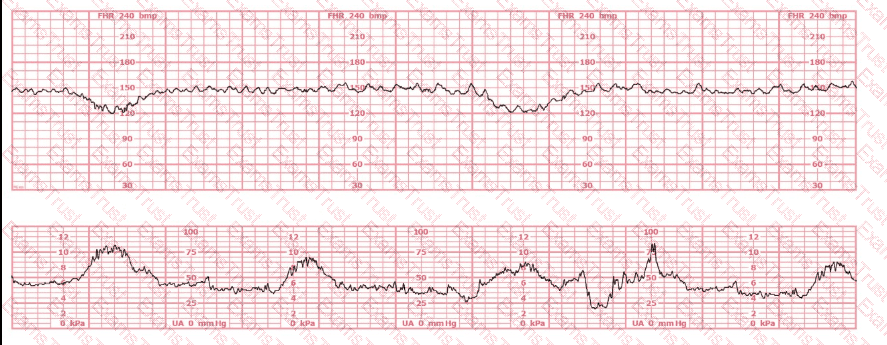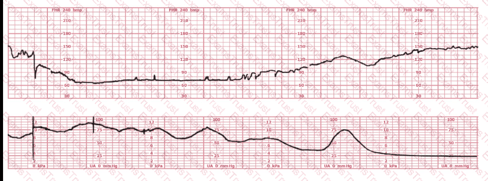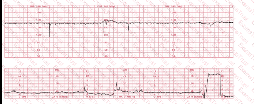 This fetal heart rate tracing is from a woman in the second stage of labor. This tracing is best interpreted as:
