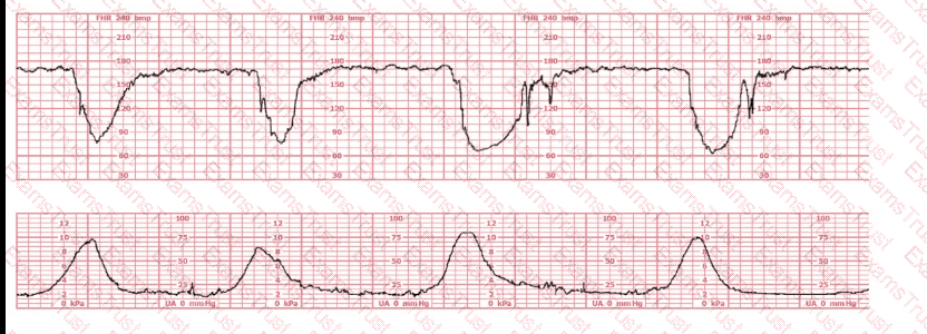 The decelerations seen in the fetal monitoring tracing shown are best described as: