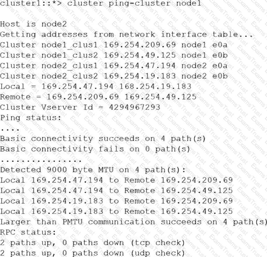 You are preparing to replace a Cisco Nexus 92300YC switch. You have executed the cluster ping-cluster node1 command and received the output shown in the exhibit.