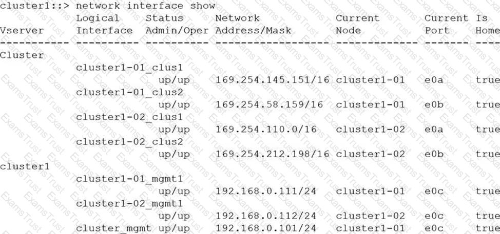 Referring to the exhibit, which IP address would have been used to join node 02 to the cluster during setup?