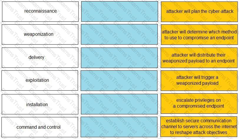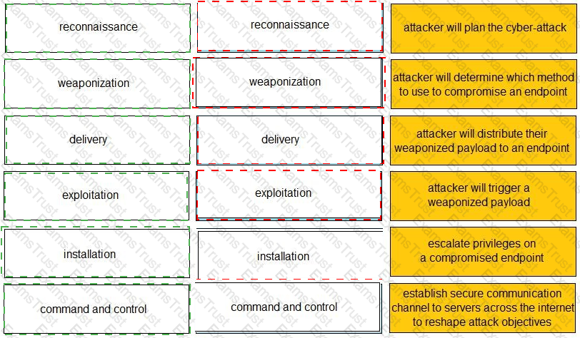 Given the graphic, match each stage of the cyber-attack lifecycle to its description.
