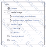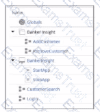 You create a RcboticBanking project containing a Bankerlnsight application, two automations (AddCustomer and RemoveCustomer). and two Bankerlnslght's application methods (CustomerSearch and Login).