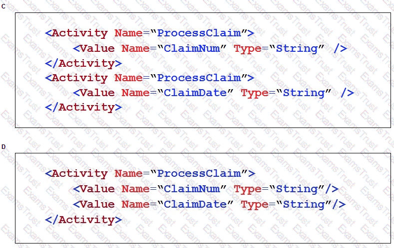 An Insurance Call Center project requires the use of the Interaction Framework. The supporting applications should perform specific work when processing claims. The claim requires the claim number and the claim date, but it may also share other claim information in the interaction’s context values.